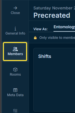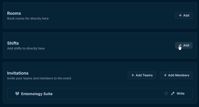 You can add shift types from an event's slide-out panel. To open the slide-out, click an event in your group dashboard, then select the Members tab.