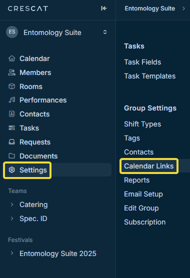 Head to your group's settings, then click Calendar Links under Group Settings.