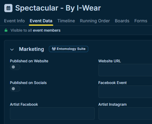The Event Data tab allows all event members to view or manage key metadata for your event. It’s a collaborative workspace where internal metadata can be seen or edited directly in the event by anyone.