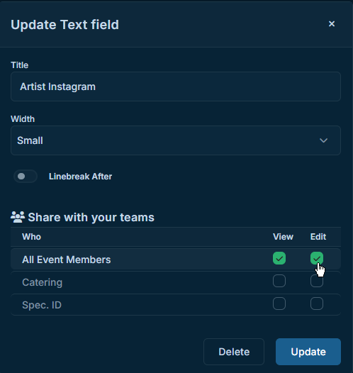 Then, under "Share with your teams", select the checkboxes in the desired columns.
