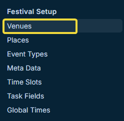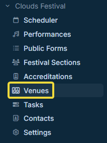 The available selection of venues and rooms will be dependent on the specific access that was given to the festival section.