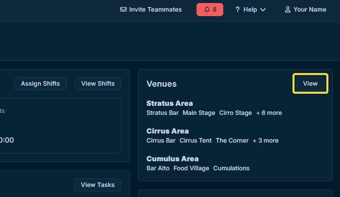 Once a festival section has access, the View button will appear in the "Venues" area of the festival section's Dashboard.