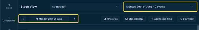 Use the date filter to narrow what you see. When a date is selected, Stage View focuses on information for that day.