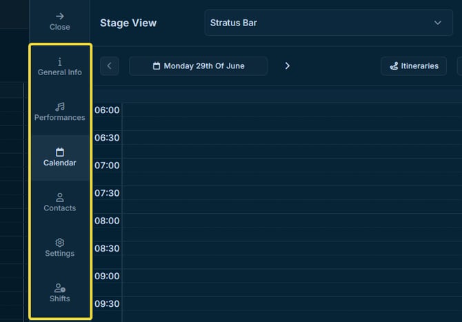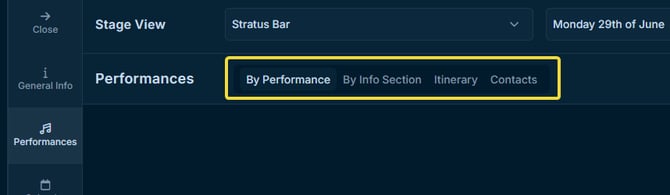 Try Stage View when you want an overview of the venue information and performance context relevant to that section.