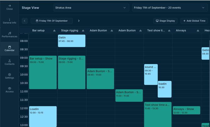 Stage View gives you a single place to understand what is happening at a venue or room during a festival.