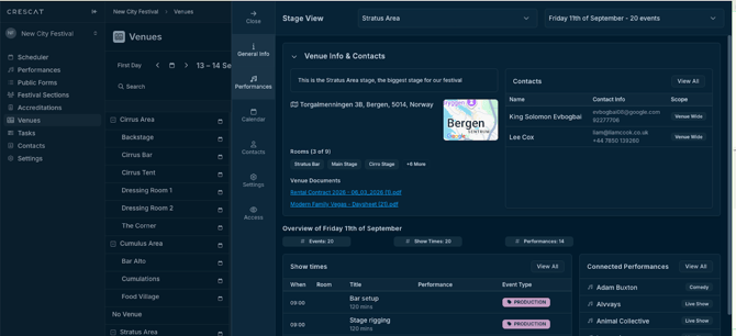 When you are already working with the festival’s connected venues, and want to move directly into a stage-focused overview.